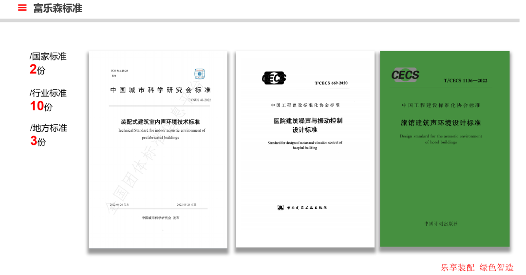 富乐森自成立以来,致力于成为产品开发者、标准制定者、技术普及者、行业引领者。全面参与了各大医养机构、学校、办公、酒店、工业厂房、人才公寓、住宅等标志性项目建设及服务,装配式高隔声集成墙体系统解决方案赢得了行业的高度认可。公司坚持“创新引领绿色装饰,匠心铸就民族品牌”的使命,不断夯实基础、创新研发、提升品质、优化服务,致力于成为让客户更加信赖,员工更加热爱,社会更加尊重的绿色装饰行业先锋企业。