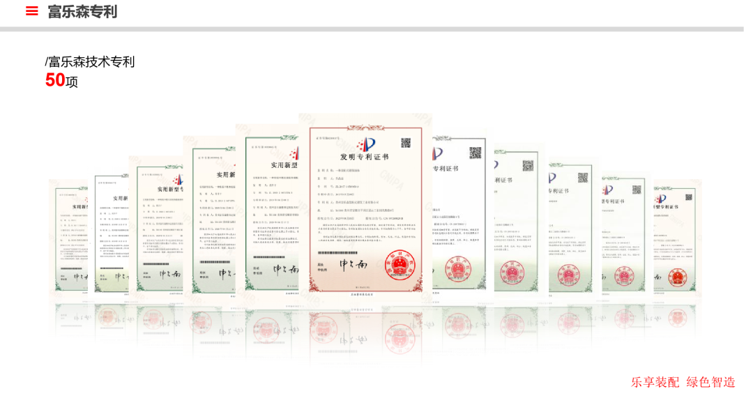 新型墙体材料推广应用是建材工业推进供给侧结构性改革的有效抓手,墙体材料革新工作是大力推进生态文明建设,促进循环经济发展的一项重要举措。富乐森深耕装配式建筑行业多年,一直认真贯彻建筑节能标准,积极发展和推广应用新型节能墙体材料,专注于新型墙材——装配式集成墙体的生产研发,现已拥有自主专利技术50余项,参编标准10余项。