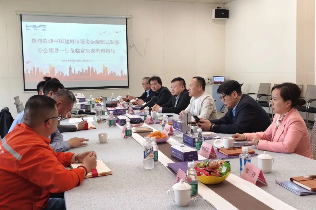 4月15日,中国建材市场协会装配式装修分会领导一行莅临富乐森工业公司调研指导工作。中国建材市场协会装配式装修分会秘书长吴浩、中国建材市场协会装配式装修分会副会长、辽宁省装饰协会会长刘兴贵、清华大学建筑学院室内设计研究院设计总监刘嘉、贵阳市建筑设计院装饰分院长兼设计总监李雄明、贵州安培建筑装饰工程有限公司总经理王志辉、中国建材市场协会装配式装修分会部品组副秘书长杨丽红及秘书处相关人员一同参加调研。