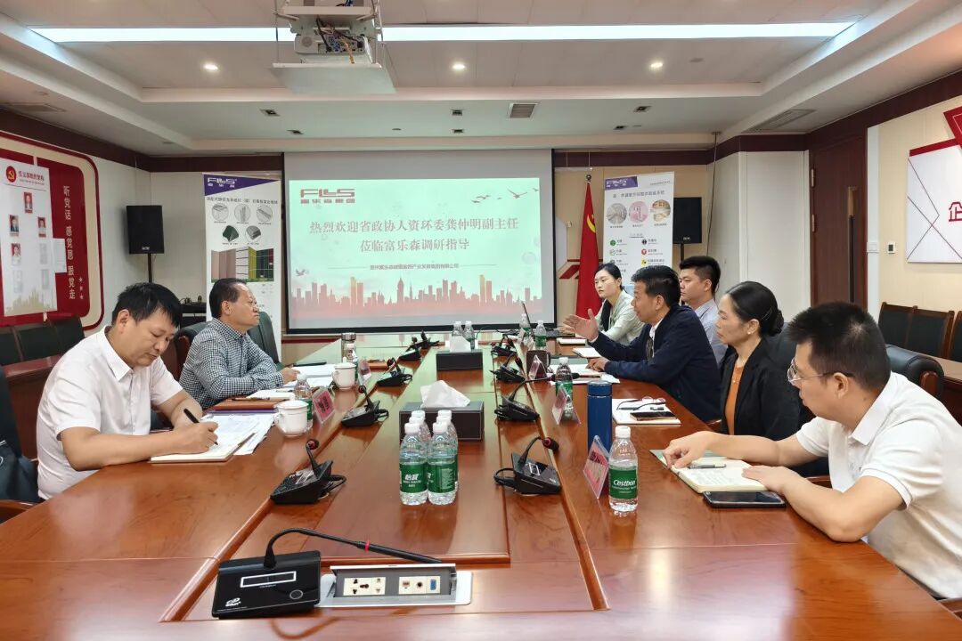 10月17日,省政协人口资源环境委员会龚仲明副主任(省卫生健康委员会原党组成员、省计划生育协会专职副会长(正厅长级))、省政协人口资源环境委员会办公室杨星副主任莅临富乐森,开展委员企业调研指导工作。