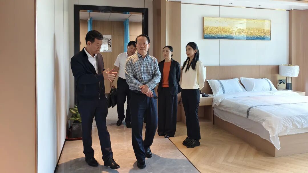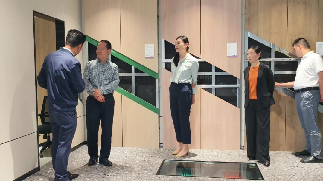 调研组在省政协委员、富乐森集团创始人肖升干,集团副总经理兼工业公司总经理肖杨等管理团队的陪同下,实地考察了集团打造的装配式装修“医院、酒店、办公、公寓”实景展厅,并参观了装配式隔墙、装配式墙板、抗菌隔声复合生态门及装配式卫生间的新型工艺展示中心,直观了解企业发展现状与技术实力。