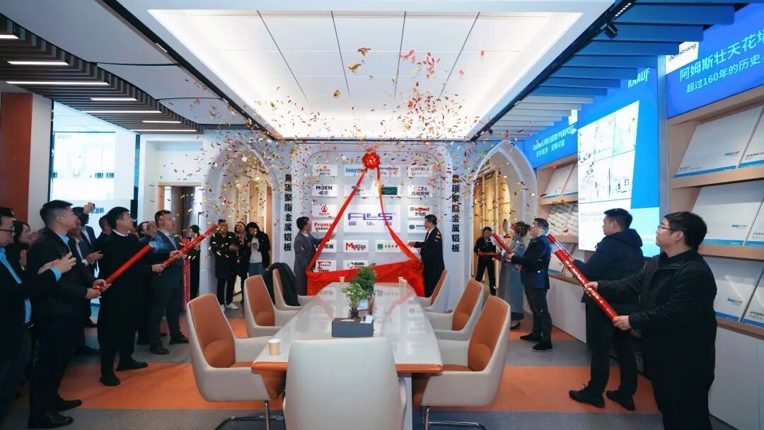 在热烈的掌声与全场嘉宾瞩目下,富乐森集团董事长肖升干、总裁肖升建共同为“鑫实达装配式部品品牌展厅”揭幕,并随即与九位国内外一线品牌嘉宾代表同台剪彩。金剪落下,彩绸轻扬,标志着这一汇聚行业力量、共创未来的合作平台正式启航。