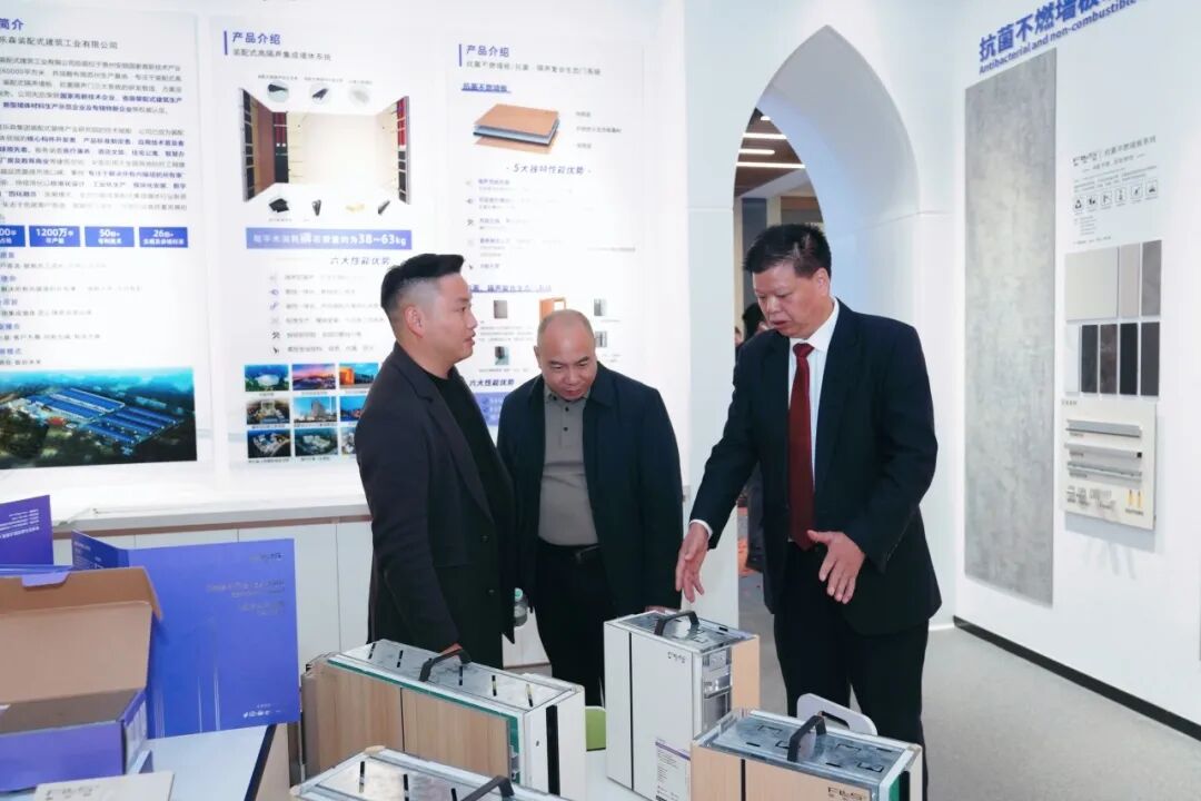 富乐森装配式建筑工业工艺展厅集中展示了装配式隔墙、装配式墙板、抗菌隔声复合生态门及装配式卫生间的新型工艺,通过实物展示与技术解析,全方位呈现富乐森在装配式建筑领域的创新应用与前沿成果,为参观者提供了一场装配式建筑的技术盛宴。