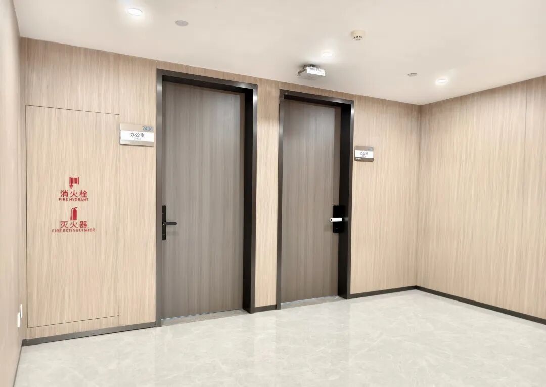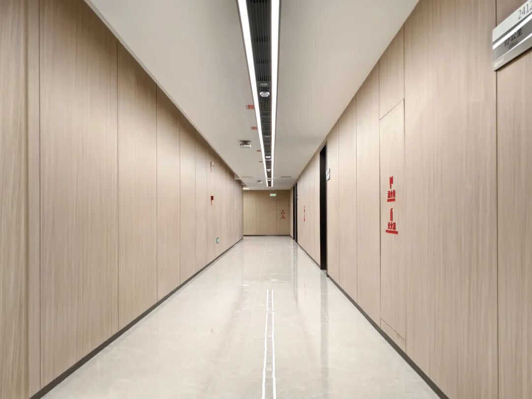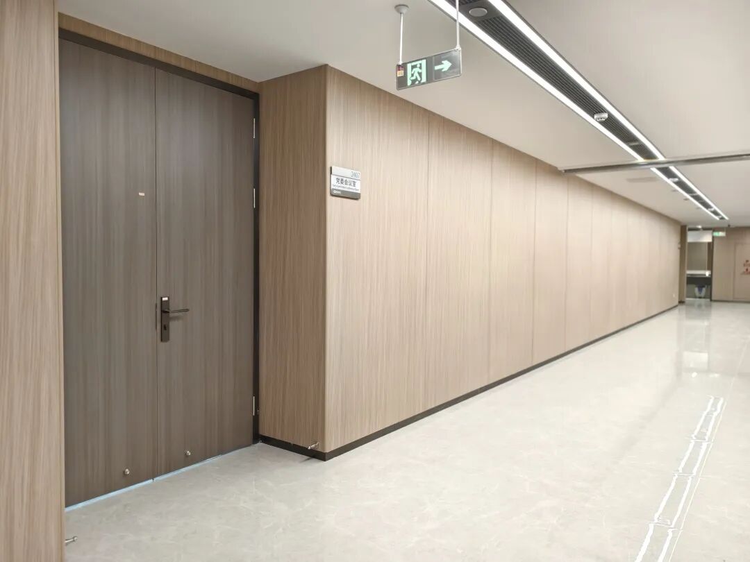 为满足贵州燃气集团对总部大楼高品质室内空间的需求,富乐森提供了专业的室内隔墙系统整体解决方案,核心应用两大自主研发产品体系——装配式隔声墙板系统(5.5mm抗菌不燃墙板)、抗菌复合生态门系统。